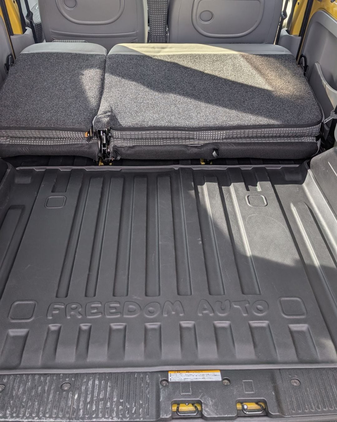 カングー①用は、リアシートの下まで敷く事が可能なラゲッジマットです。
